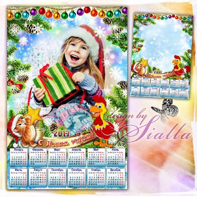 Календарь на 2017 год – Детский, весёлый, новогодний PSD, PNG | 2969 x 4200| 300 dpi | 106 Mb Все надписи редактируются. Автор: Sialla